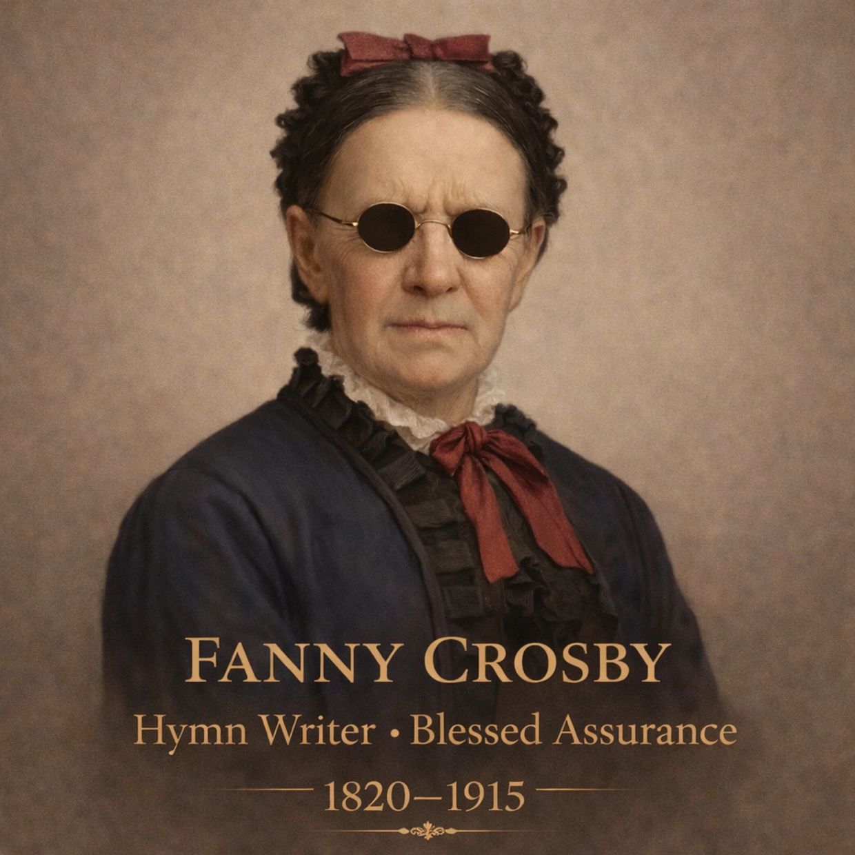 Fanny Crosby (1820–1915) was a prolific American hymn writer, poet, and Christian mission worker whose life and work are well documented through her own autobiographies, hymn publications, and 19th-century historical records. Born in Brewster, New York, she lost her sight in infancy due to a medical error. She consistently described her blindness not as a hardship, but as a circumstance that shaped her dependence on God and her life’s calling.